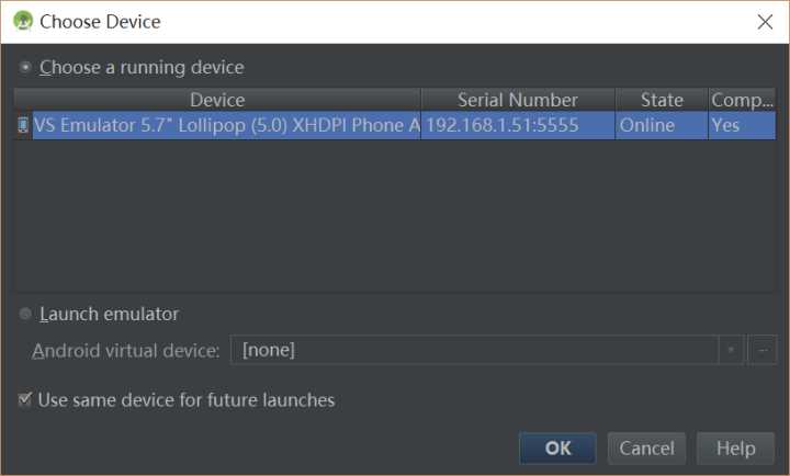 启动模拟器后,使用adb connect 模拟器ip:5555就可以在android studio中选择用该模拟器来调试安卓应用了。