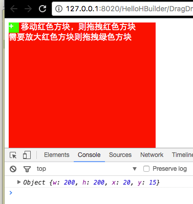 移动红色方块,则拖拽红色方块<br>需要放大红色方块则拖拽绿色方块